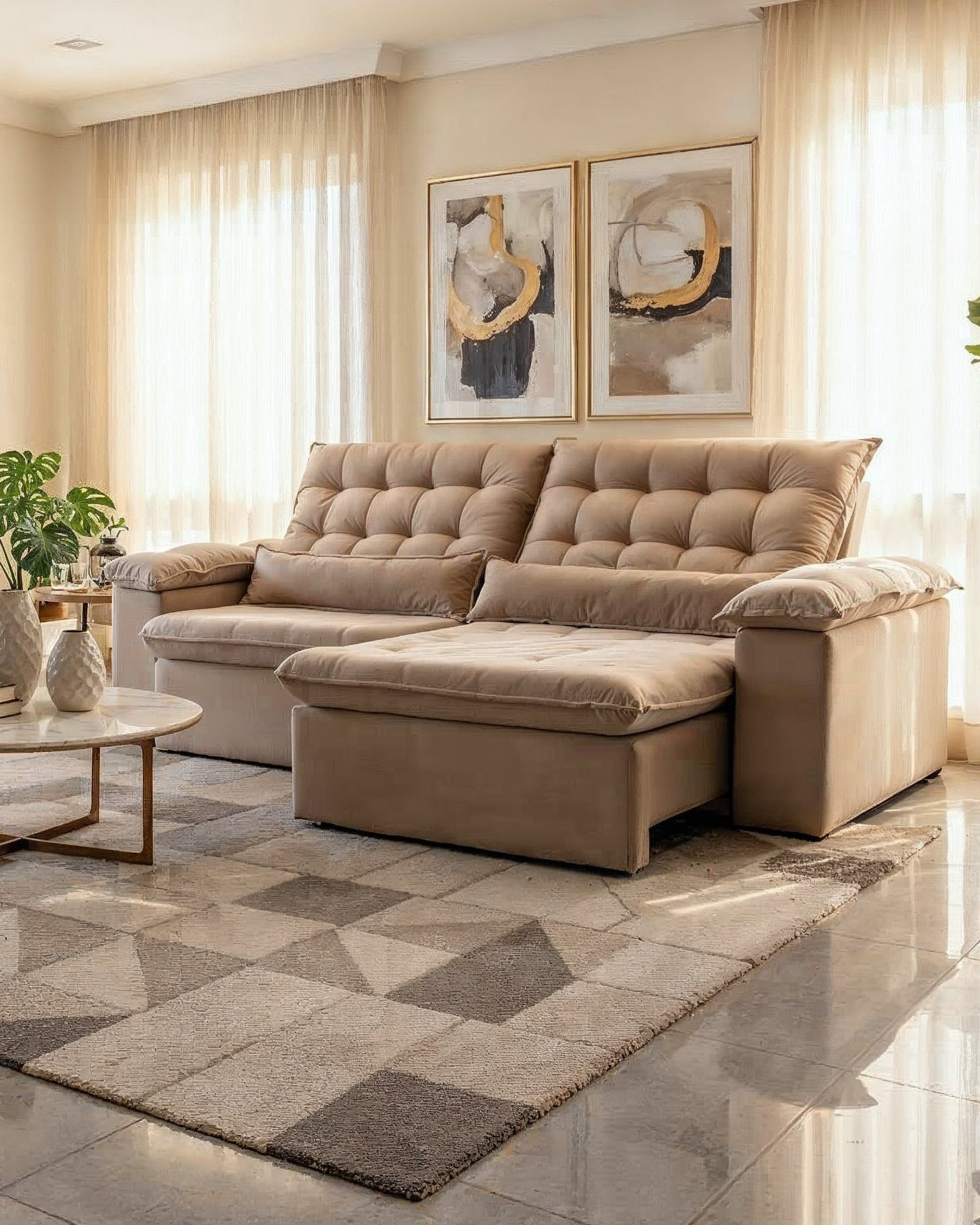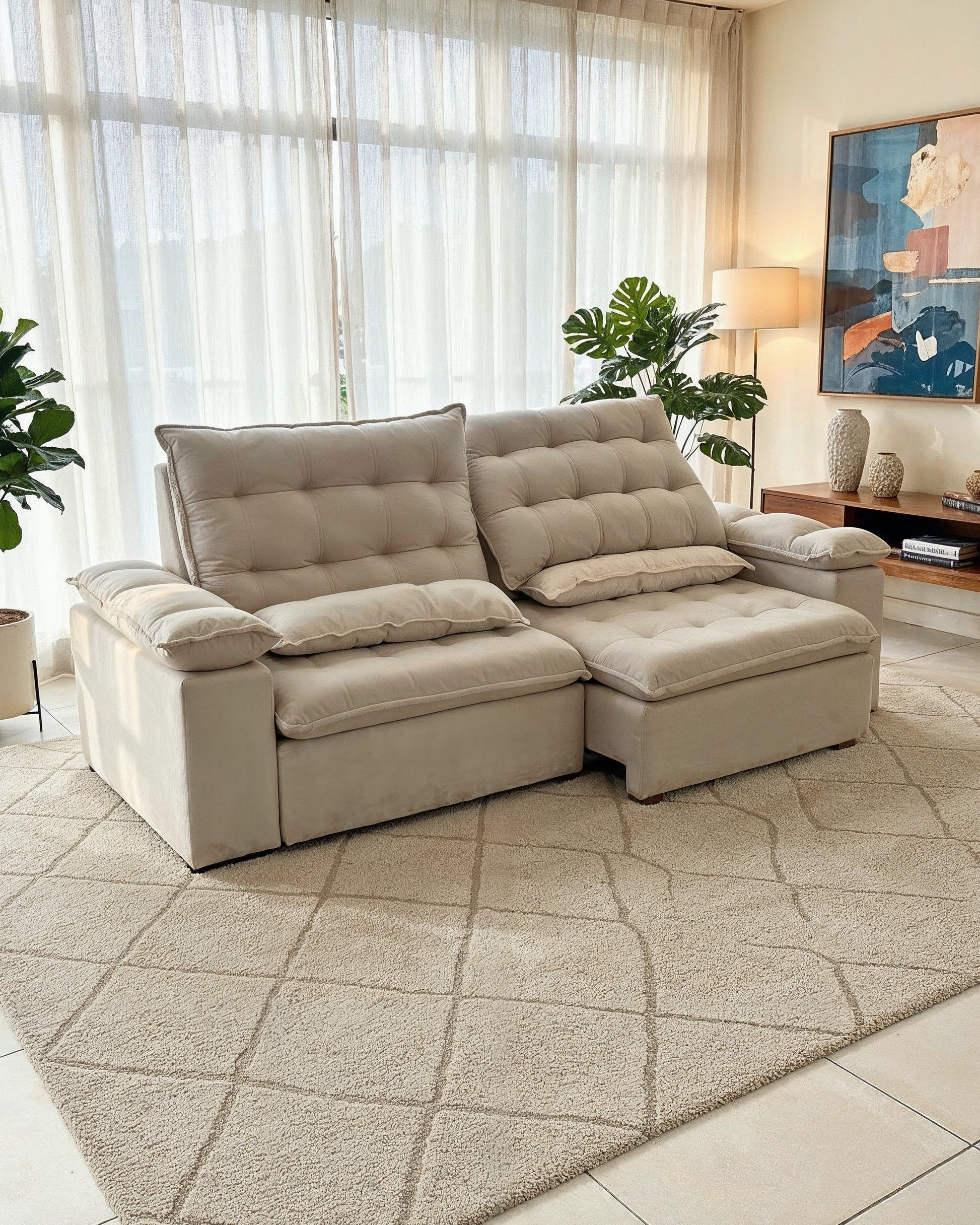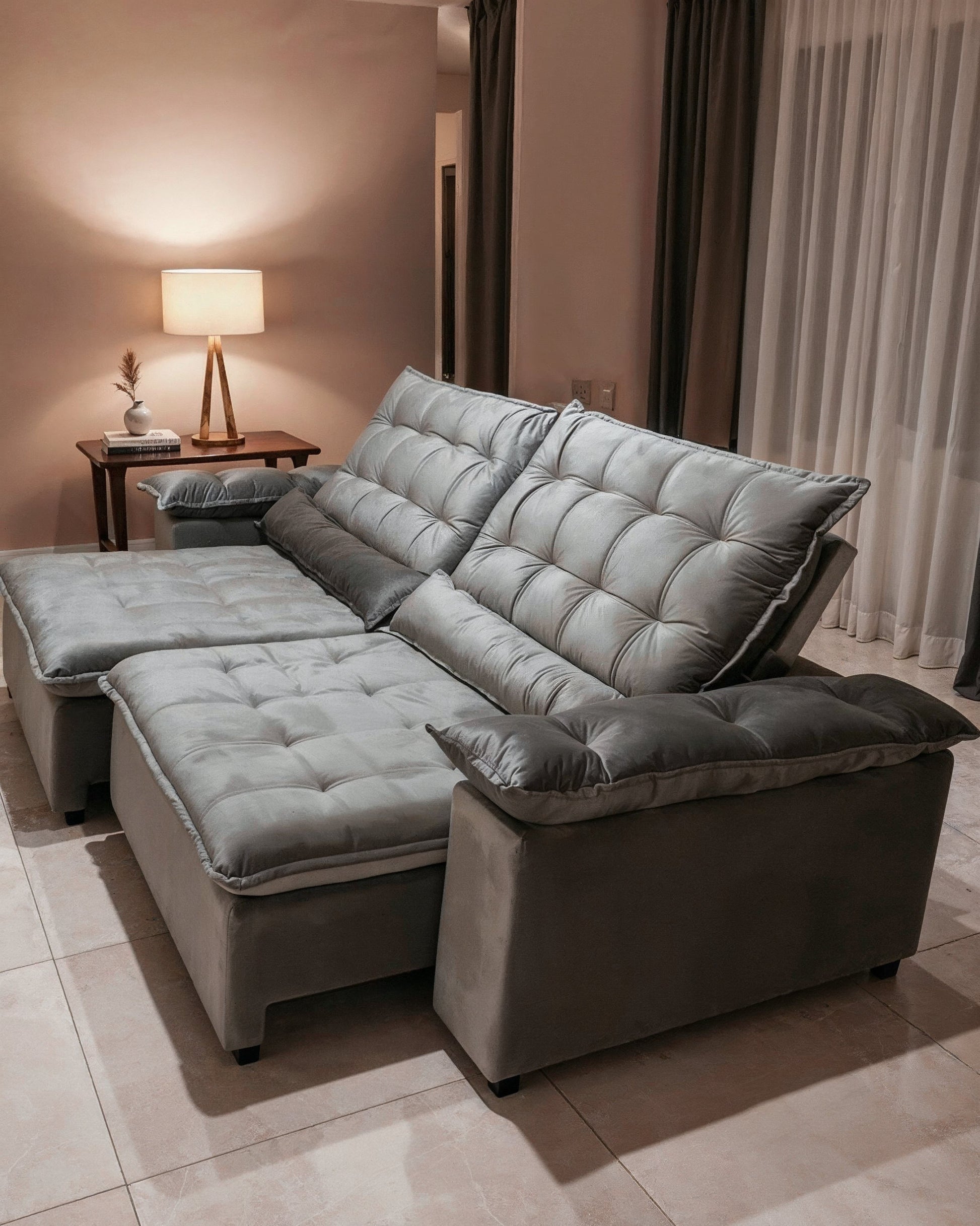 Sofá Retrátil Reclinável com Espuma D33 – Compacto, Versátil e Estruturalmente Robusto
