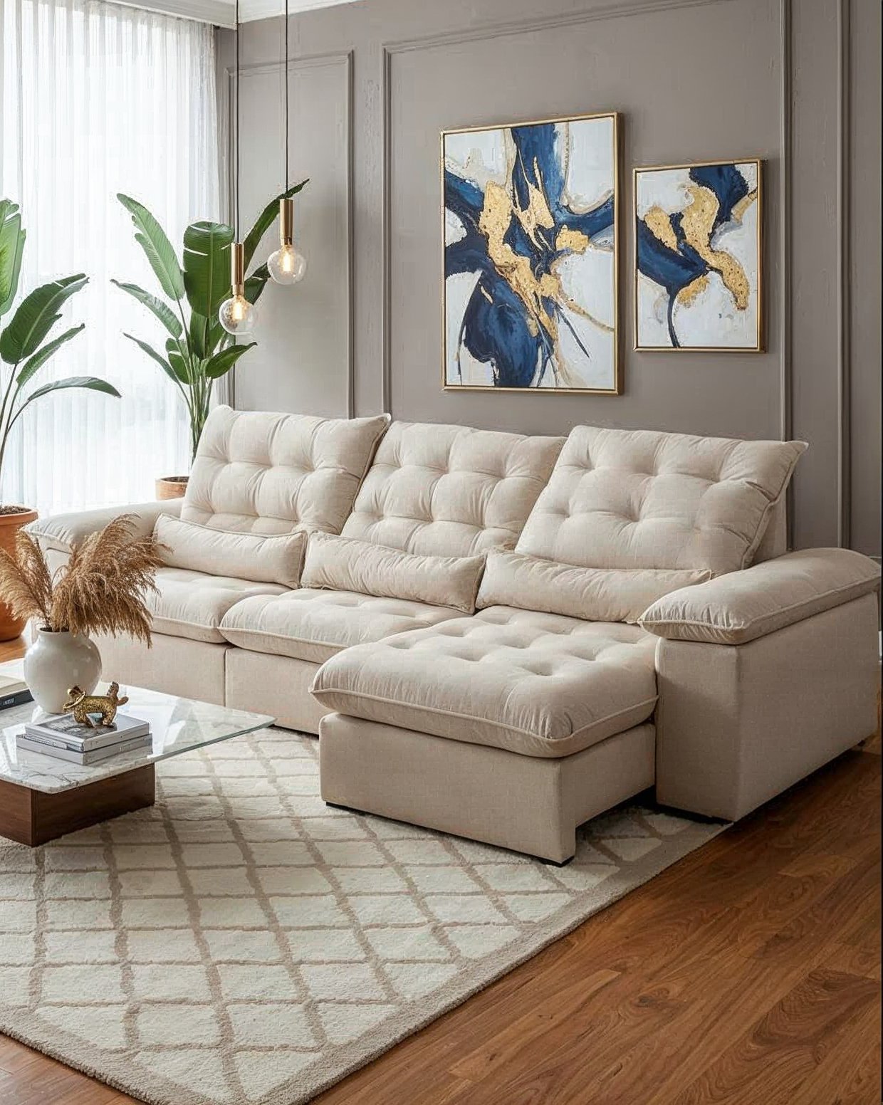 Sofá Retrátil Reclinável com Molas Ensacadas – Upgrade Máximo em Conforto e Engenharia